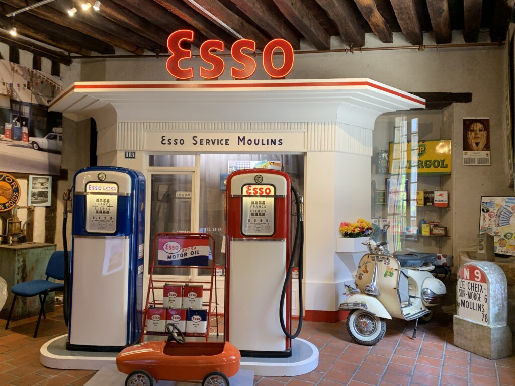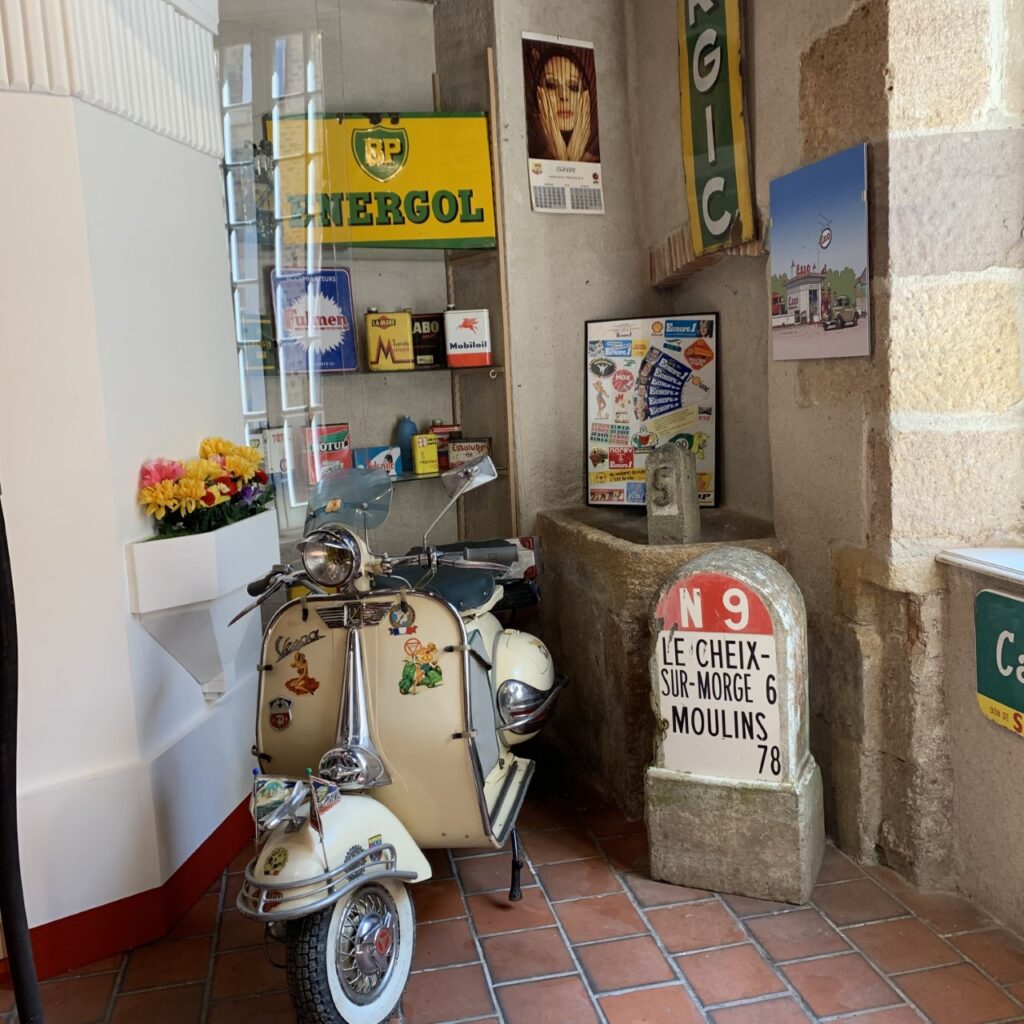 Les véhicules, 4cv, 403 ou Traction bien chargés, circulent à fond de train mais il faut penser à faire le plein d’essence à l’entrée de Moulins. Retrouvez une réplique de la station d’Avermes avec ses pompes, réalisée par un collectionneur passionné.